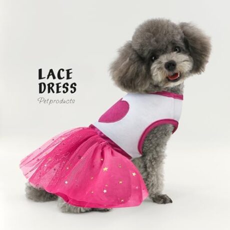Idepet Spring Summer Pet Dog Cat Puppy Tutu Princess Dress Heart Printed Lace Dog Skirt Pet Apparel Dog Dress (Rose Red, M)