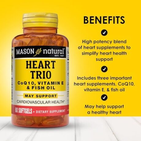 MASON NATURAL Heart Trio,Co Q10, Vitamin E & Fish Oil, 3 Month Suppy, Supports Normal Heart Health, 3 Pack