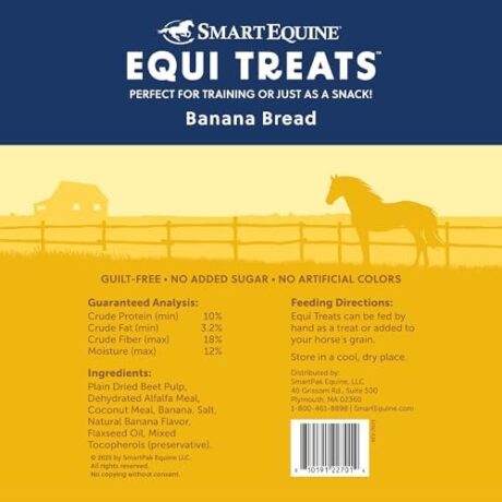 SmartEquine Equi Treats | Made with Beet Pulp & Alfalfa | High-Fiber Horse Treats | Low ESC & Starch | Bite-Sized | No Added Sugar | Banana Bread Flavor Cookies for Horses, 4 lb Bag