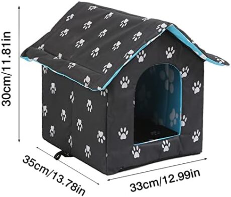 Outdoor Cat House, Cat Houses for Outdoor Cats, Weatherproof Warm and Insulated Cat House with Transparent Curtain Pet House, Stray Cats Shelter (Black,Small-Houses)