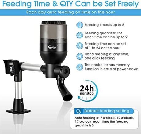 hygger LCD Control Automatic Pond Fish Feeder, Capacity 5.5L,DC 12V