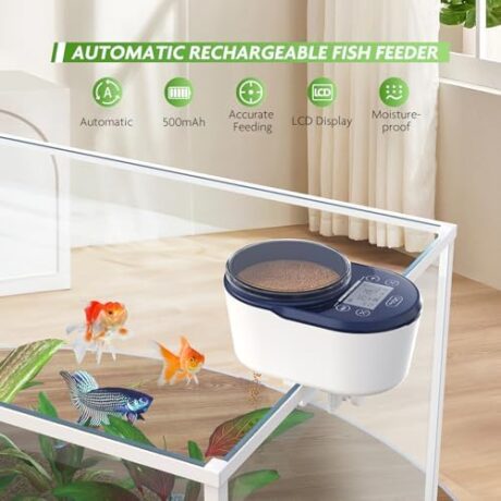 PAIZOO Automatic Fish Feeder for Aquarium, Rechargeable Timer Fish Food Dispenser for Betta Fish Turtle Feeder, Moisture-Proof Fish Food Vacation Feeder with LCD Display
