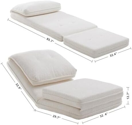 LIKIMIO Foldable Tatami Lazy Sofa Bed, Cozy Human Dog Bed with 5 Adjustable Positions for Living Room, Bedroom & More, Cream
