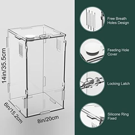 BETAZOOER Acrylic Mini Reptile Tank Habitat Transparent Terrariums with Locking Latch Suitable for Tarantula Isopod Roach Invertebrates (8”x6”x14”)