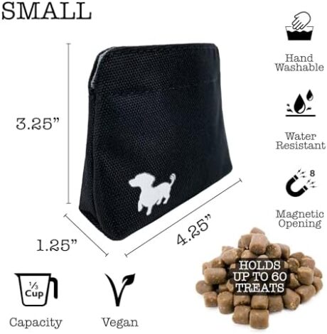 Pocket Sized Dog Treat Pouch – Treat Pouches for Pet Training – Small Dog Treat Pouch with Magnetic Closure – Dog Walking Treat Bag for Dog Training – Black with Gray Interior
