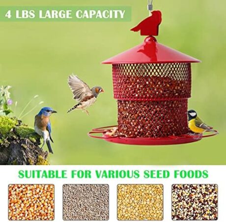 Metal Bird Feeder for Outside Hanging, Bird Feeders Squirrel Proof, 4 Lbs Large Capacity Tube Iron Mesh Wild Birdfeeder for Outdoor Finch Cardinal Chickadees -Red