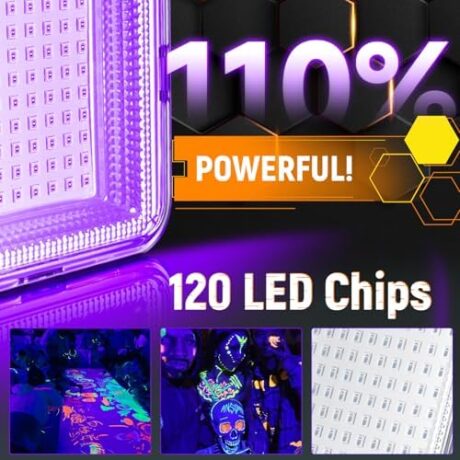 Rechargeable 5000mAh LED Black Light, 120 UV led, IP65 Waterproof & Magnetic, Long Runtime Ultraviolet Light for Neon Glow Party, Halloween, UV Posters, Body Paint, Fluorescent Art, Outdoor Use