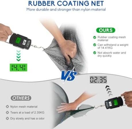 PLUSINNO Floating Fishing Net for Steelhead, Salmon, Fly, Kayak, Catfish, Bass, Trout Fishing, Rubber Coated Landing Net for Easy Catch & Release, Compact & Foldable for Easy Transportation & Storage