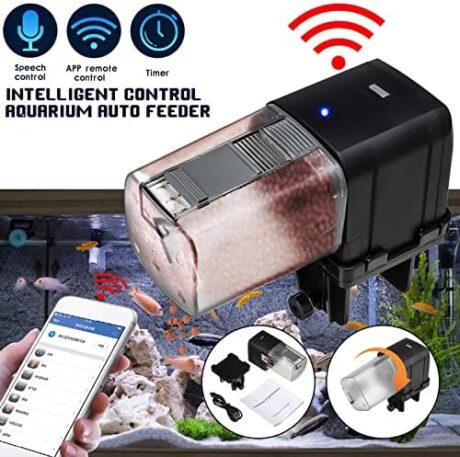 WiFi Control Automatic Fish Feeder with APP Lychee Aquarium Automatic Fish Feeder, WiFi Control Auto Fish Food Dispenser for Home Office (Black)