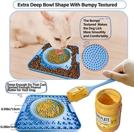 Lick Bowl for Dogs, Hold Enough Food Cat Lick Mat, Frozen Lick Mat for Cats and Dogs, Anxiety and Boredom Reducer, Dog Lick Bowl Mat for Peanut Butter Yogurt Perfect for Grooming (2 Packs)