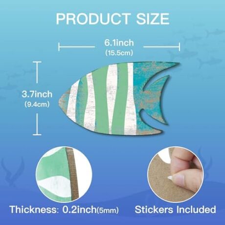 Putuo Decor 5 Pieces Wood Fish Nautical Beach Wall Art – Hand Carved Wooden School of Fish Hanging Coastal Sculpture for Lake House, Ocean, Home – Vintage Blue