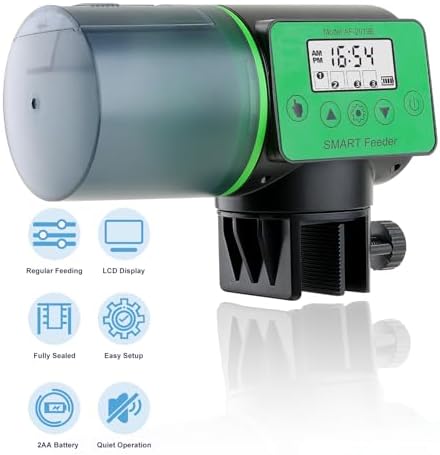 Automatic Fish Feeder for Aquarium, 200ML Large Capacity Auto Food Dispenser with Timer Display for Small Tank, Big Aquariums & Pond