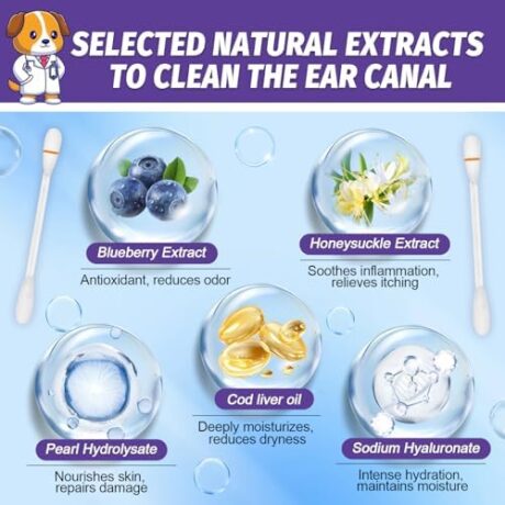 2-in-1 Pet Ear Cleaner Swabs – Natural & Gentle Ear Cleaner for Dogs & Cats – Removes Wax, Dirt & Odor – Individually Wrapped for Easy Use – 50 Pcs