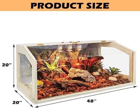 Prolee 68 Gallon Reptile Terrarium Tank Large 48 Inch Lizard Tank Bearded Dragon Tank with Roof Door, Snake Tank with Built-in Lamp Fixture and Switch, Side Windows, 48 Inch