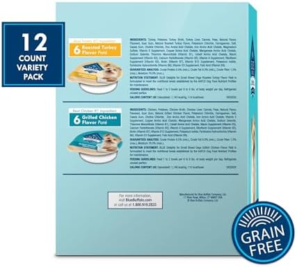 Blue Buffalo Delights Small Breed Natural Wet Dog Food Variety Pack, Roasted Turkey Paté and Grilled Chicken Paté, 3.5-oz Cups, 12 Count
