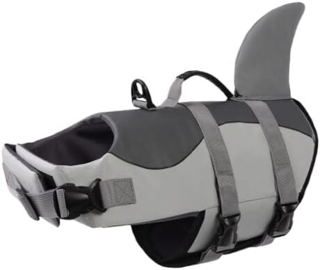 ASENKU Dog Life Jacket – Pet Safety Vest for Swimming & Boating, Shark Life Jacket with Floatation, Dog Lifesavers Swimsuits for Small Medium Large Dogs (Grey, S)