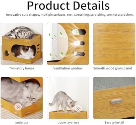 Cat Scratcher, Cardboard Cat House with 2 PCS Cat Scratch Pads, Cat Scratching Board Cat Scratchers for Indoor Cats, Cube Shape Cat Scratch Box Play House, Easy to Assemble