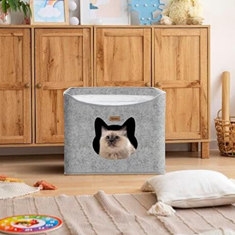 Geizire Cat House Cat Beds for Indoor Cats, Large Cat Hideaway with Cute Interesting Opening Shape Cat Cave for Pets Playing, Climbing, Hiding and Sleeping, Portable Collapsible Cat Tent