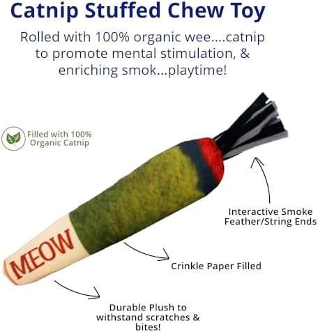 Doobie Catnip Toys for Cats – Soft, Bite-Resistant Cat Chew Toys with Long Shape for Kicking and Stress Relief