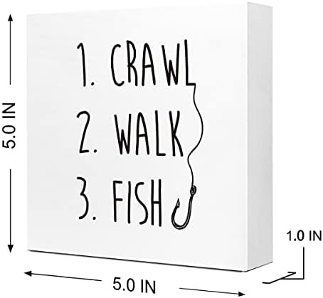 Crawl Walk Fish Rustic Wooden Sign Desk Decor,Funny Baby Fishing Wood Block Sign Desk Decorations for Home Bedroom Baby Room Desk Shelf Table Decor