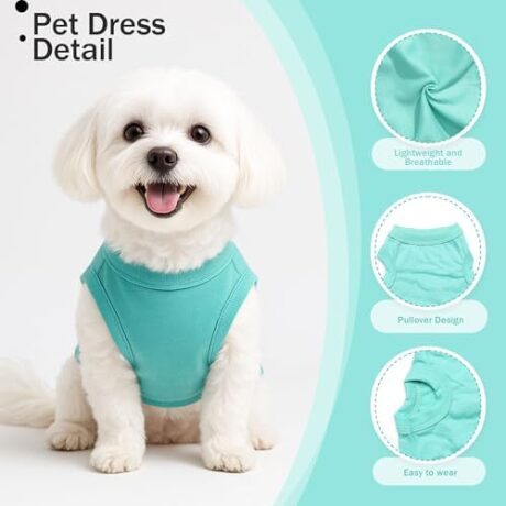 2 Pieces Dog Clothes for Small Dogs Girl Boy Spring Summer Puppy Soft Dog Shirt Solid Color Chihuahua Clothes Pet Clothing Cute Cat Cloth XXS~M (Cyan,Dark Green, Medium)