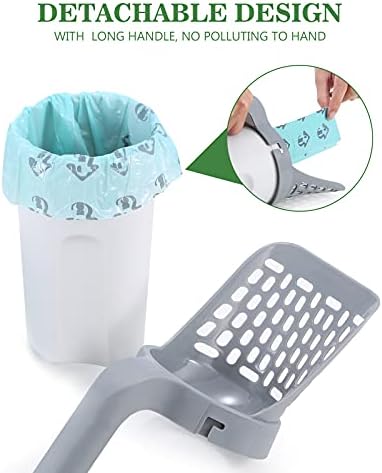 Cat Litter Scooper with Holder: 2 in 1 Portable Kitty Integrated Detachable Deep Cat Litter Shovel with Waste Container with Poop Sifting Cat Litter Disposal Syst with 120 Count Refill Bags (Grey)