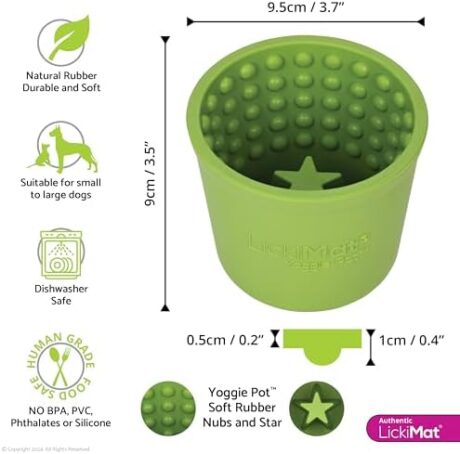 LICKIMAT Yoggie Pot – Distraction, Fun and Enrichment. Long Lasting Rubber Licking Treat Dispenser for All Dog Sizes and Slow Feeder for Small Dogs – Green