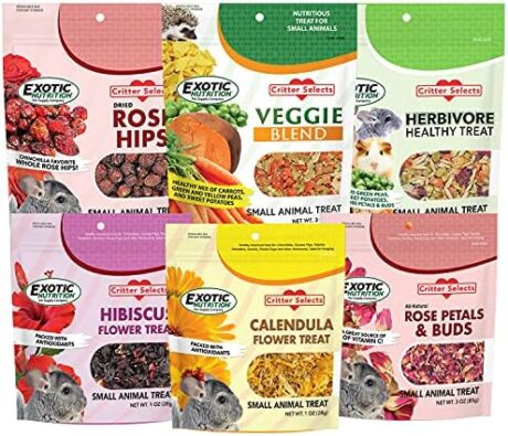 Exotic Nutrition Herbivore Treats 6 Pack – Healthy Assortment Small Animal Pet Treat – Squirrels, Guinea Pigs, Rabbits, Chinchillas, Prairie Dogs, Degus, Hamsters, Gerbils, Herbivores