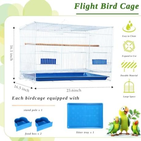 Layhit 4 Pcs Flight Bird Cage Foldable Metal Bird Crate with Food Boxes and Standing Posts Iron Parrot Cage White Cage for Small Parrots Parakeets Cockatiels Budgies Conures Quaker Finches