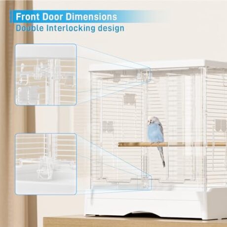 40 Inch Medium Small Bird Double Cage for Parrot Lovebirds Finches Canaries Parakeets Cockatiels Budgie Parrotlet Conures, w/Detachable Standing Perches, Snow White
