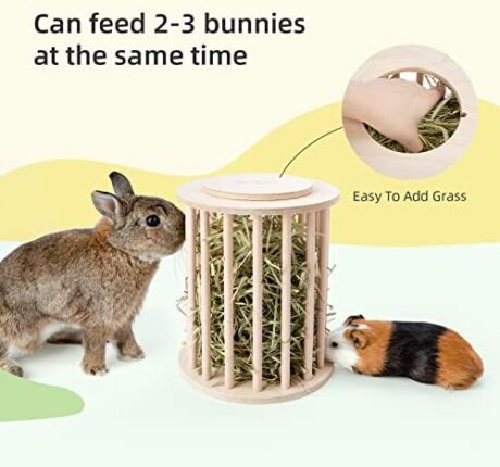 Hay Feeder Less Wasted Wooden Food Feeding Rack for Rabbit Guinea Pig Chinchilla – Standing Pet-self Feeding Hay Manage