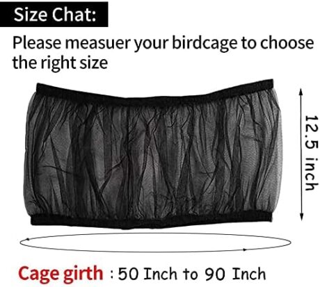 Universal Bird Cage Seed Catcher,Seed Catcher Guard Net Cover,Parrot Nylon Mesh Net Cover,Soft Airy Cage Net Stretchy Skirt for Round Square Cages(Circumference 50 inch to 90 inch,Black)