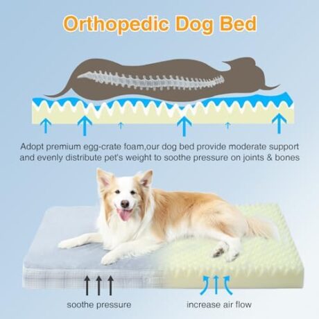MIHIKK Washable Orthopedic Dog Bed for Large Dogs, XL Waterproof Pet Bed with Egg Crate Foam Strong Support, Machine Washable Cover & Anti-Slip Bottom & Durable Zipper 41×27(Gray)
