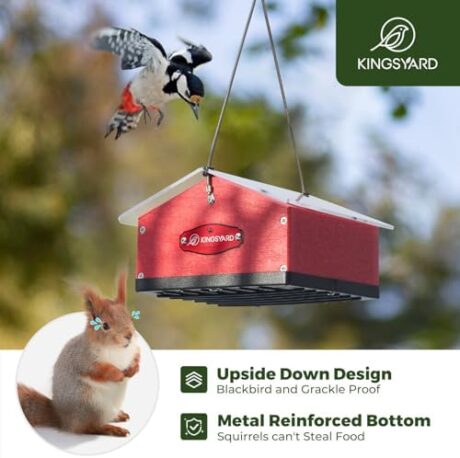 Kingsyard Upgraded Upside Down Double Suet Feeder for Outside Hanging, Squirrel-Proof Metal Edging, Wild Bird Feeder with Metal Weatherproof Roof, Attracting Woodpeckers, Nuthatches, Titmouse