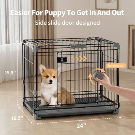 Dog Crate for Small Dogs Under 25lbs,24 inch Black Thick Metal Dog Kennel Indoor Wire Cage with Double Door and Removable Tray for Pets,Puppy