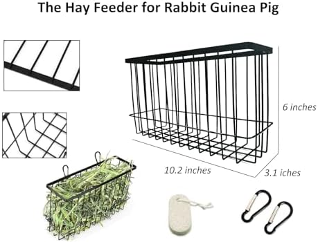 Hay Feeder for Rabbit Guinea Pig Chinchilla Small Animal Bunny Hanging Feeder for Cage Heavy Duty Metal Rack Timothy Veggie Holder (hay feeder*1 + food water cage cup *4 + Pet Teeth Grinding Stone*1)