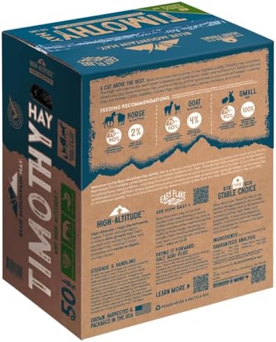 Blue Mountain Hay High-Altitude Timothy Hay, 50lb Easy Flake Box – Balanced Nutrition & High Fiber for Healthy Digestion and Weight – Ideal for Horses, Goats, Rabbits, Guinea Pigs & Other Small Pets