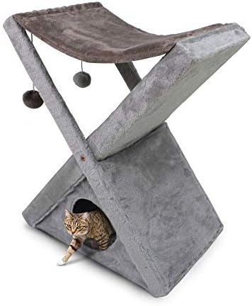 Roypet Cat Tree with Cat Condo and Two Hammocks, Cat Tower with Scratching Posts and Scratching Pads, Cat Tree Tower for Indoor Cats, Grey