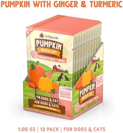 Weruva Pumpkin Patch Up! Pumpkin with Ginger & Turmeric for Dogs & Cats, 1.05oz Pouch (Pack of 12)