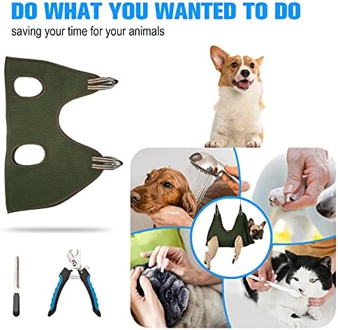 Professional Dog Grooming Kit. Kkiimatt Dog Nail Trimming Sling Hammock is equipped with a solid, thicker and Super Strong Carabiners x2, Sharp Dog Trimming Clipper x1 with a safety gadget design, and File x1, widened and thickened Sling x2 (for irregular bars or too thick bars). These items and Dog Hammock for Grooming is a perfect combination, which makes you say goodbye to fighting with your pup during nail clipping time and hello to a stress-free grooming experience.