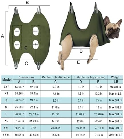 This XL size dog restraint for nail clipping is suitable for large dogs that front and rear leg distance is between 12.6~22.44in, weighing under 80LB. Please check your pets’ body size data and make a reference of the Kkiimatt dog grooming harness size form in main picture before purchase.