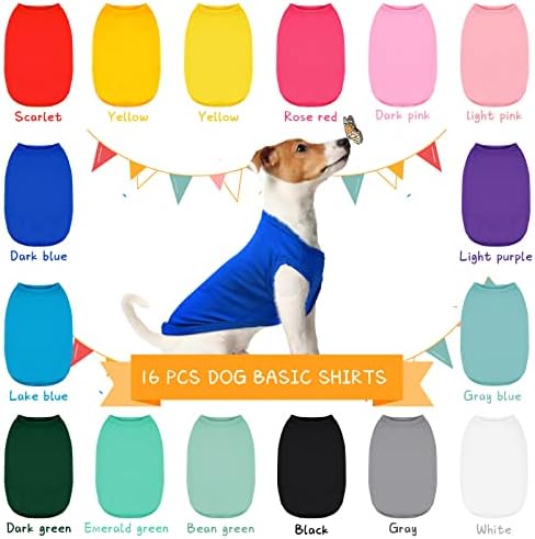 What you will receive: the package contains 16 pieces of pure color pet clothes in different colors, sufficient quantity, plus various colors can meet your pets’ daily wearing and replacement needs