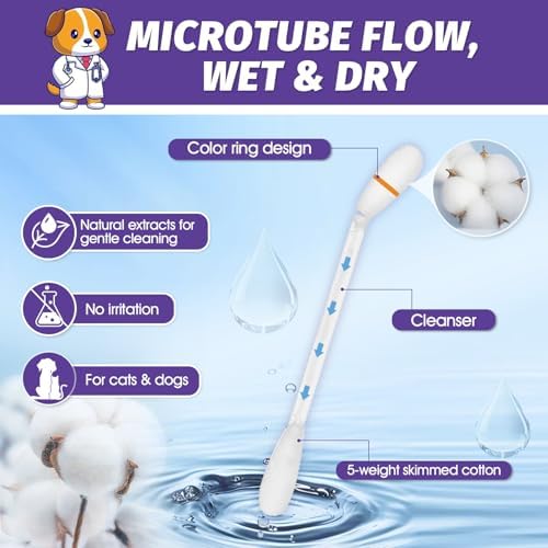 PET EAR SWAB ACCESSORIES: The handle is durable plastic, and the head is made of soft, high-quality cotton that resists deformation. It quickly absorbs and removes dirt and grease