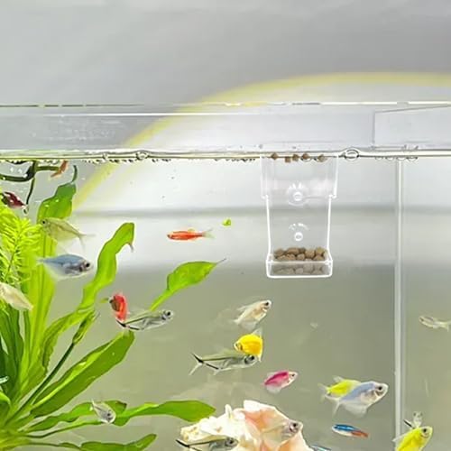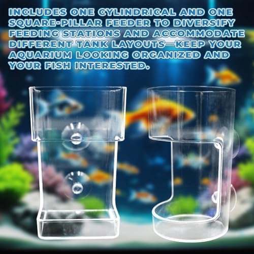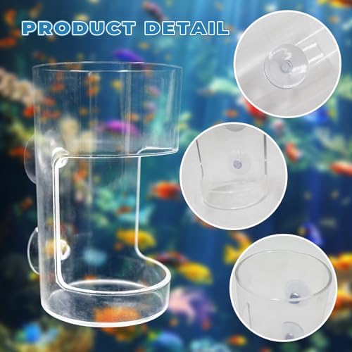 【Acrylic Feeding Tubes】: Innovative floating-sinking design: the upper ring holds floating pellets or flakes, the lower cup collects sinking food, and the hollow center lets fish and shrimp swim inside for an interactive feeding experience.