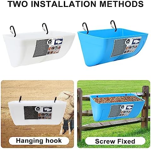 EASY TO ASSEMBLE AND CLEAN – We will provide two hanging methods of clips and screws for you to install, can be suspended from wire mesh, as well as mounted on fences or walls, very easy to use. The polyethylene resin material makes it easy to clean with just a brush or running water. it’s a practical and convenient product that will make feeding time a breeze.