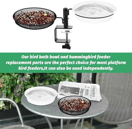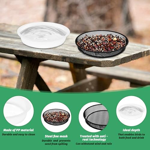 Practical and Durable:The bird bath bowl and bird seed tray is ideal for outdoor platform bird feeders and deck bird feeder,bird mesh tray is made of heavy duty steel mesh,bird bath bowl made of PP material,both are durable and easy to clean.