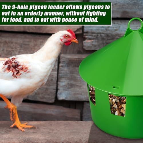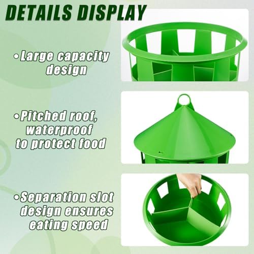 Well Designed Feeding Openings: we have designed our poultry and chicken feed storage container featuring 9 feeding openings; This design helps in reducing chaos and crowding, letting your livestock feed comfortably and adequately; It reduces wastage of feed and ensures most animals get their proper share; When it rains, the roof design prevents water from seeping into the feeder and damaging the feed