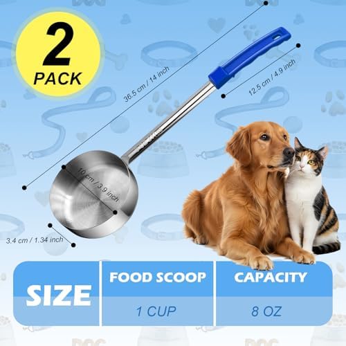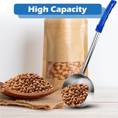 Long Handle:This extra long handle dog food scoop are designed with long handle for a comfortable grip and easy scooping and serving of pet food. The ergonomic design ensures easy maneuvering during mealtime.