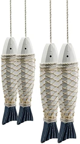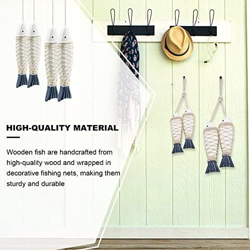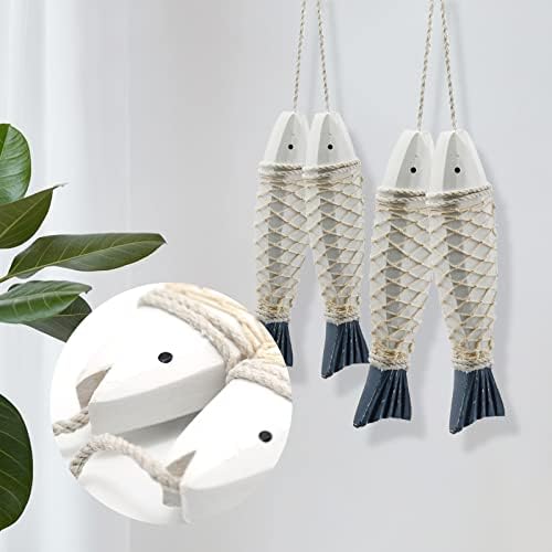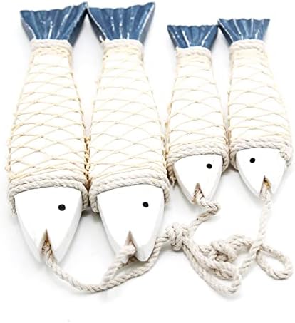 Vintage wooden fish decor: The rustic wooden fish set comes with a hanging rope, distressed looking. Light weight and long-lasting nautical wall decoration