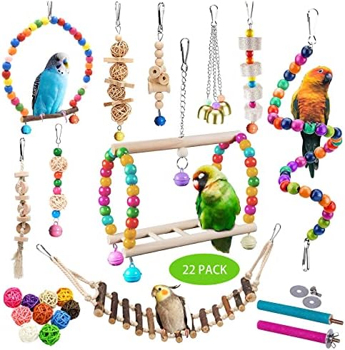 Sysmashing 22 pack Colorful Bird Cage Swing Toys, Enrich Pet Bird’s Life.